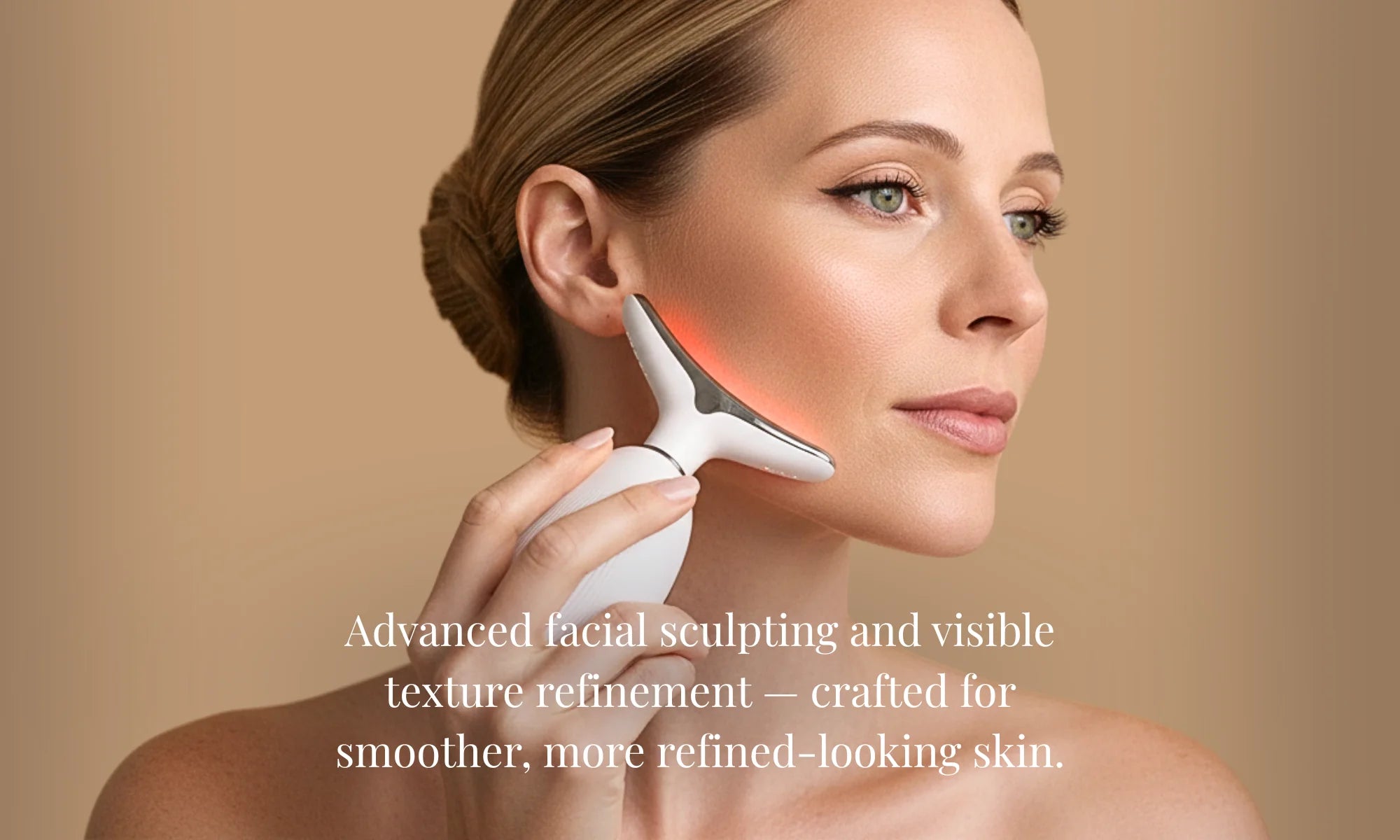 bac_1234Dermaskin LumiSculptLED Asculptingfacialdevicedesignedforarefinedskincareritual.CombiningLEDlighttherapy,EMSmicrocurrentandcontrolledwarmth,LumiSculptelevatesyourdailyroutinewithprofessional-levelperformanceandvisibleradiance. Designedtoenhance Afirmer-lookingandmoresculptedappearance Facialdefinitionalongjawlineandcheekcontours Smoother-lookingskintexture Arevitalized,luminousglow AdvancedTechnology EMSMicrocurrent—supportsatoned,liftedappearance 45°CControlledWarmth—enhancescomfortandglide TripleLEDSpectrum—red,blueandgreenlightoptions SignatureDesign Ergonomiccurvedheadforfaceandneckprecision Minimalist,travel-readysilhouette AvailableinWhiteorBlack Includes:LumiSculptLEDdevice+USBchargingcable.*Cosmeticdevice.Resultsmayvarywithconsistentuse.